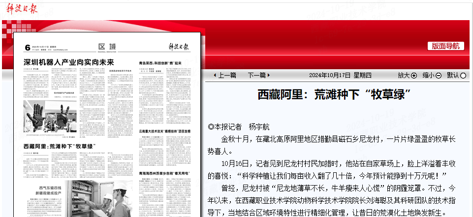 金秋十月,在藏北高原阿里地区措勤县磁石乡尼龙村,一片片绿盈盈的牧草长势喜人。10月16日,记者见到尼龙村村民加措时,他站在自家草场上,脸上洋溢着丰收的喜悦:“科学种植让我们每亩收入翻了几十倍,今年预计...