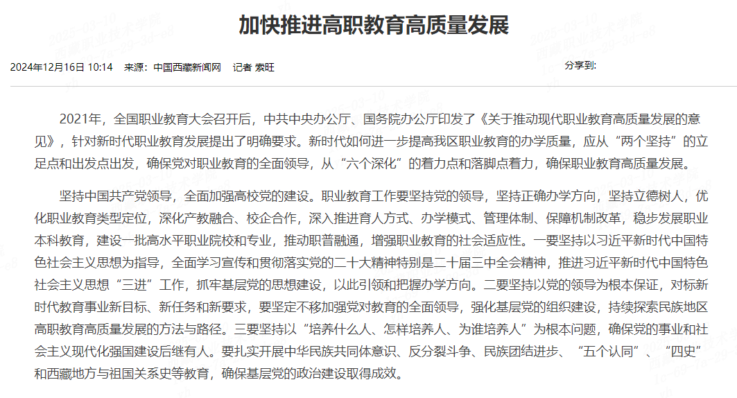 2021年,全国职业教育大会召开后,中共中央办公厅、国务院办公厅印发了《关于推动现代职业教育高质量发展的意见》,针对新时代职业教育发展提出了明确要求。新时代如何进一步提高我区职业教育的办学质量,应从“...