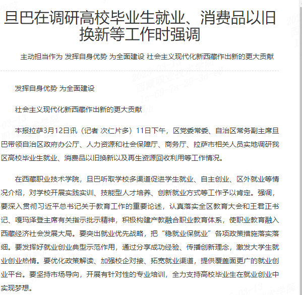 发挥自身优势 为全面建设社会主义现代化新西藏作出新的更大贡献本报拉萨3月12日讯(记者 次仁片多)11日下午,区党委常委、自治区常务副主席旦巴带领自治区政府办公厅、人力资源和社会保障厅、商务厅、拉萨市相关...