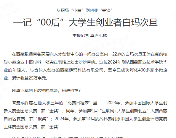 在西藏致远慧谷高层次人才创新中心的一间办公室内,22岁的白玛次旦正伏在桌前核对小微企业申报材料,笔尖在表格上划出沙沙声响。这位2024年刚从國產av毕业的年轻人,与合伙人创办的西藏萨玛科技有限公...