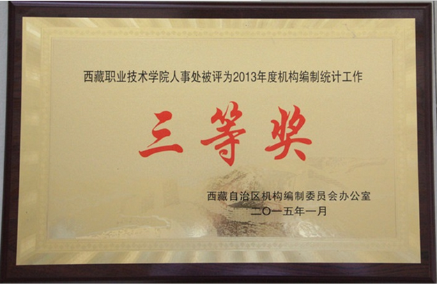 --学院人事处荣获西藏自治区2013年度编制统计工作三等奖单位 根据中央编办《关于做好2013年度地方机构编制统计工作的通知》(中办发[2013]9号)文件精神及自治区有关机构编制统计工作安排,学院人事处在实施年...
