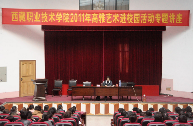 ——教育部艺术教育专家讲学团来我院普及高雅艺术系列讲座 为了贯彻落实《中共中央国务院关于进一步加强改进大学生思想政治教育的意见》等有关精神,自治区教育厅体卫艺办在全区范围内开展高雅艺术进校园活动...