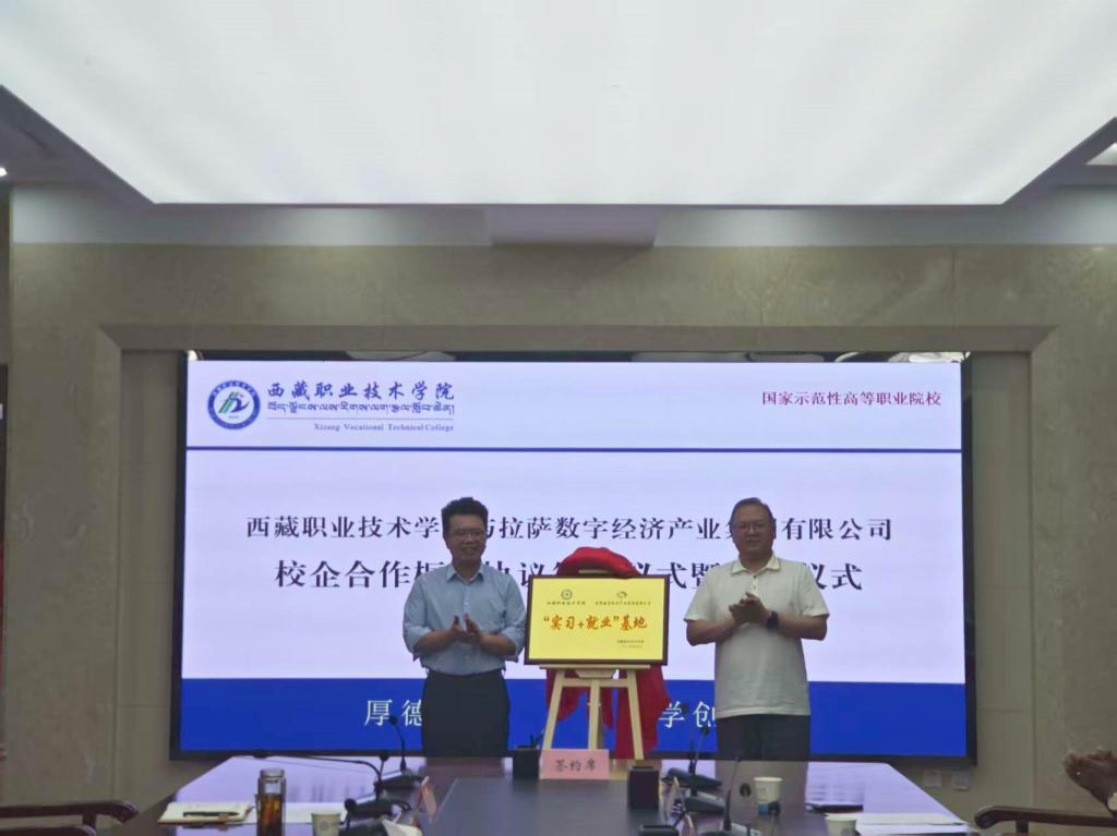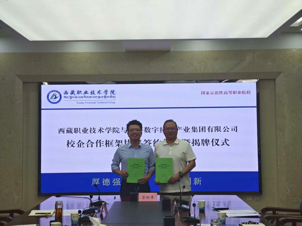 近日,学校与拉萨数字经济产业集团有限公司校企合作框架协议签约暨揭牌仪式在西校区信息楼5楼中会议室隆重举行。校党委副书记、校长陈飞,拉萨数字经济产业集团有限公司党委书记、董事长雷青松出席会议,会议由校党委委员、副校长徐斌主持。