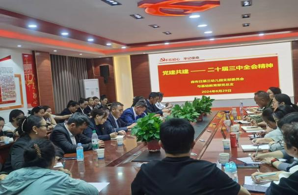 在学习交流二十届三中全会精神时,森布日第三幼儿园党支部委员会洛桑达娃书记指出,森布日幼儿园的教师们要以党的二十届三中全会精神为指引,将全会精神与学前教育相结合,提升师资队伍建设,增强教学效果。陈玲、白玛玉珍同志分别针对分管工作,以教育教学、师德师风为主题,结合党的二十届三中全会精神进行交流。群培次仁同志从教育、科研、收入、就业等工作生活息息相关的九个方面进行交流发言,他强调党建共建具有重要意义,希望两校今后能够继续深化合作,共同进步。