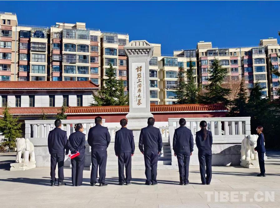 图为老西藏精神学习与传承社团成员在谭冠三纪念园讲解