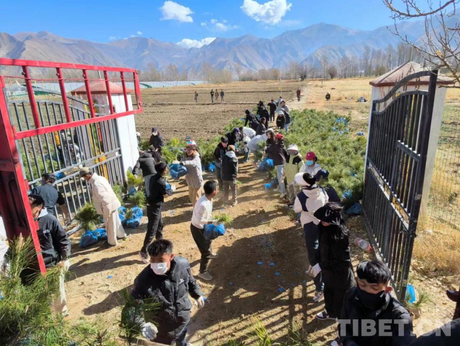 图为张艾平带领学生一起参与拉萨南北山绿化