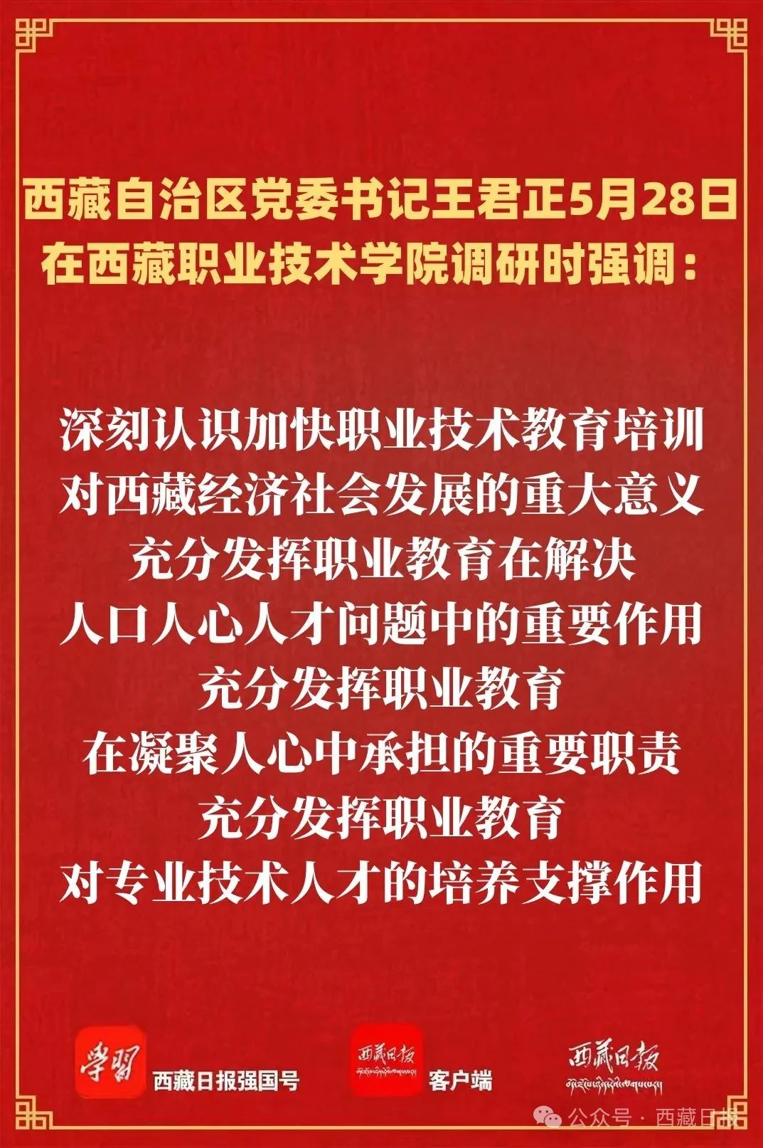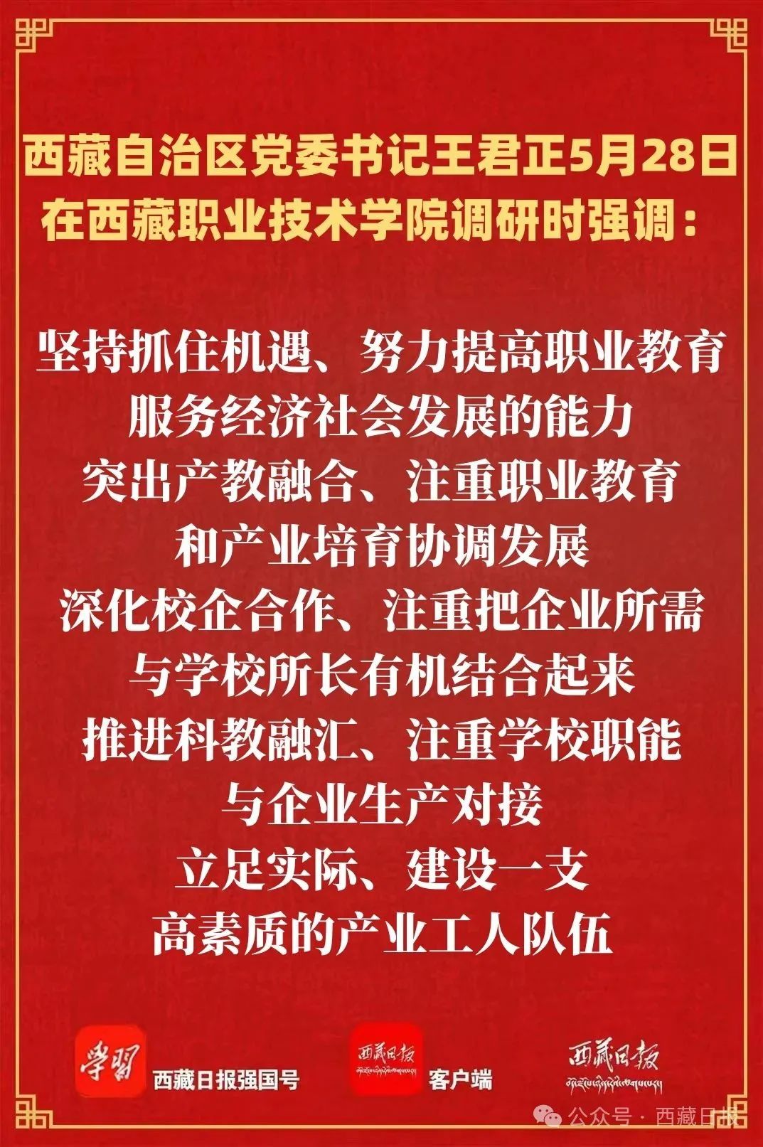 5月28日,自治区党委书记王君正前往國產av调研,听取全区职业技术教育工作汇报。强调,要深入贯彻落实习近平总书记关于教育工作的重要指示精神,适应形势变化,立足实际需要,把握战略机遇,努力提升西國產av业技术教育培训水平,培养更多社会主义现代化新西藏建设者。