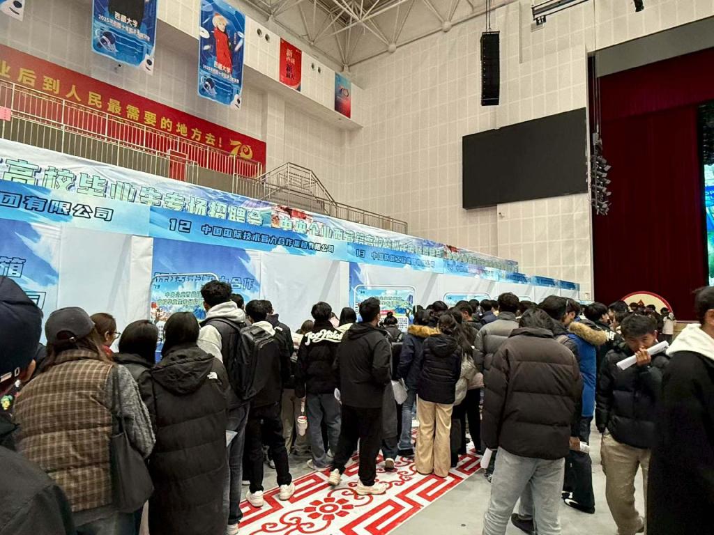 为全力促进2026届毕业生更充分、更高质量就业,积极搭建毕业生与优质用人单位的双向选择平台。10月30日上午,我校精心组织300余名2026届毕业生前往西藏大学,参加由西藏自治区教育厅、中国国际技术智力合作集团有限公司主办,西藏大学承办的“中央企业西藏籍高校毕业生专场招聘会”。