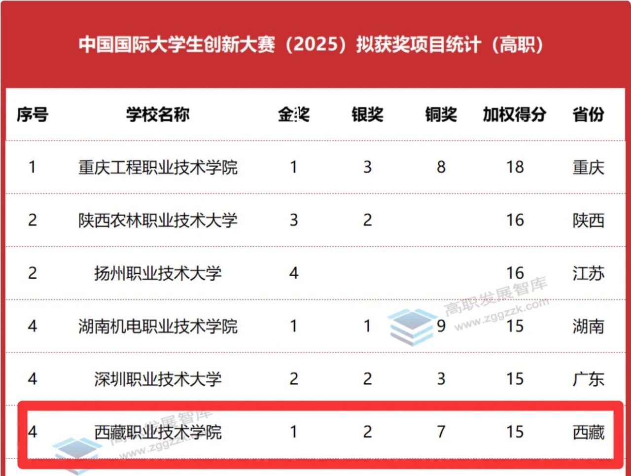 祝贺!全国高职院校并列第三名!