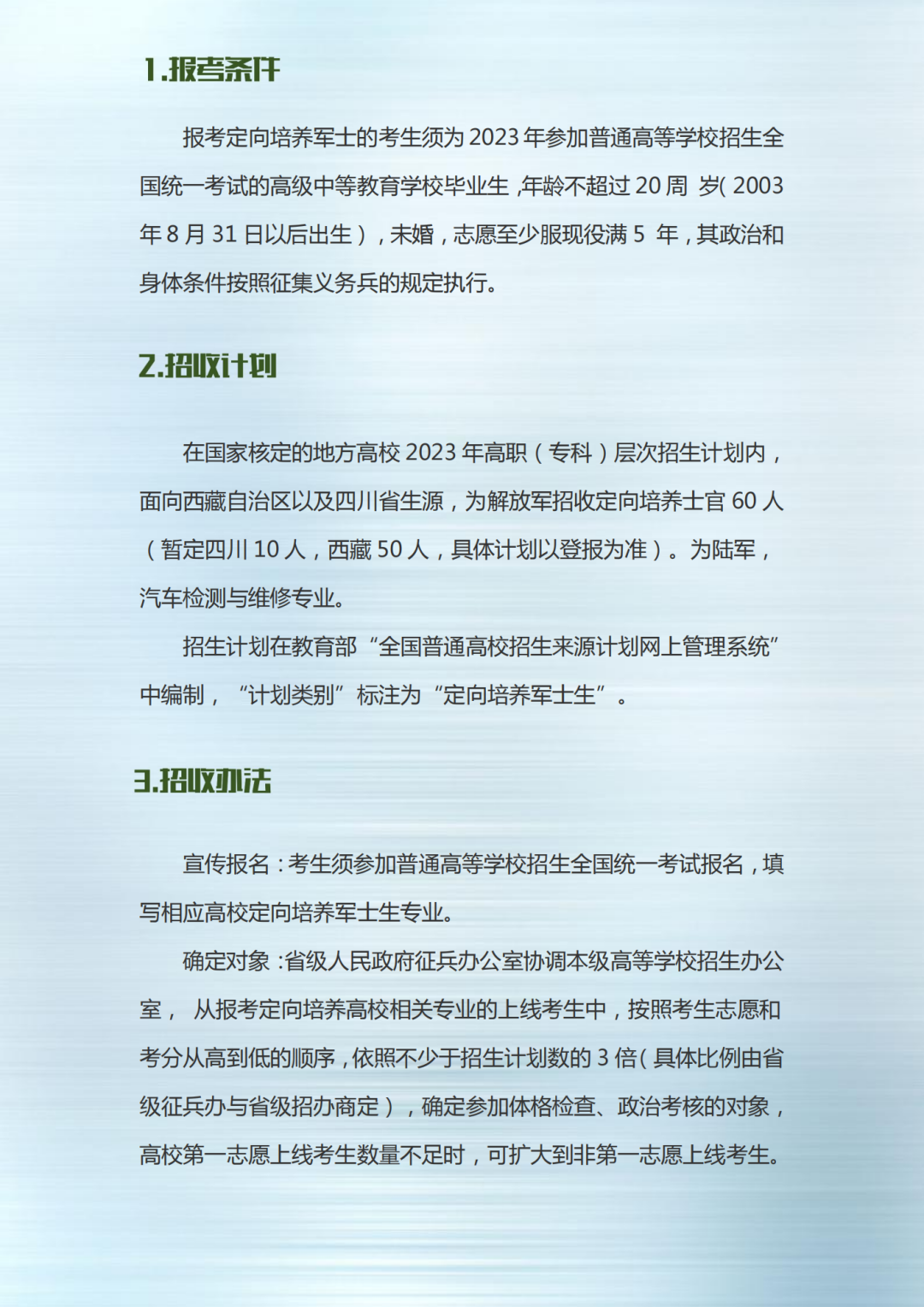 60人!西藏一高校定向培养军士招生简章来了