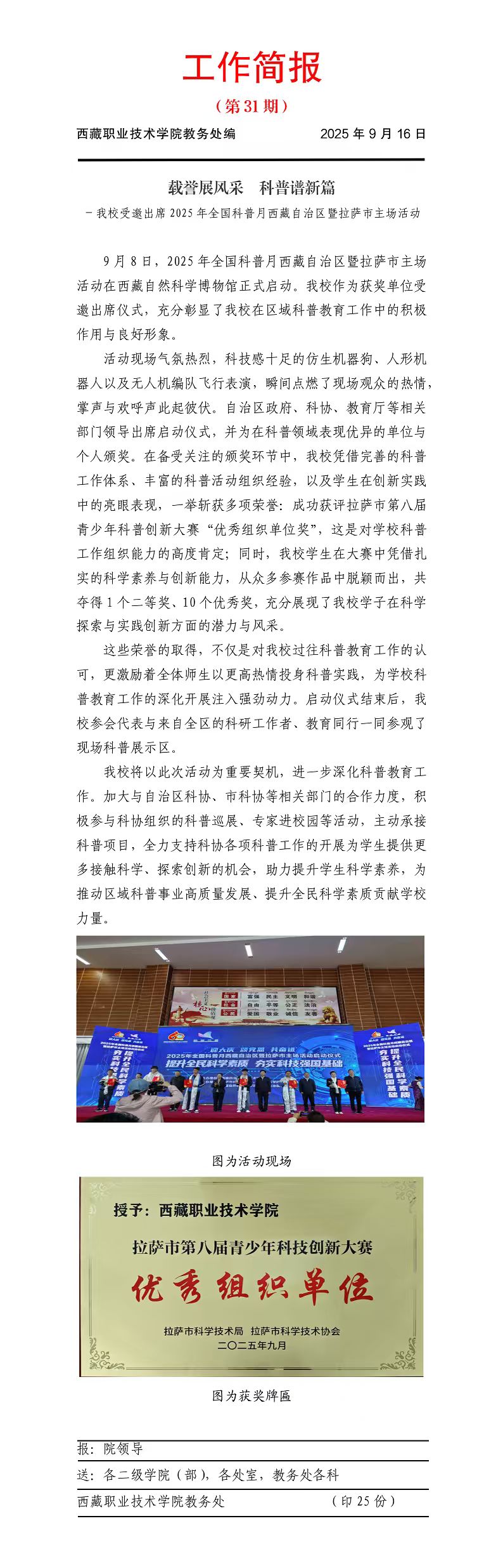 载誉展风采 科普谱新篇 -我校受邀出席2025年全国科普月西藏自治区暨拉萨市主场活动