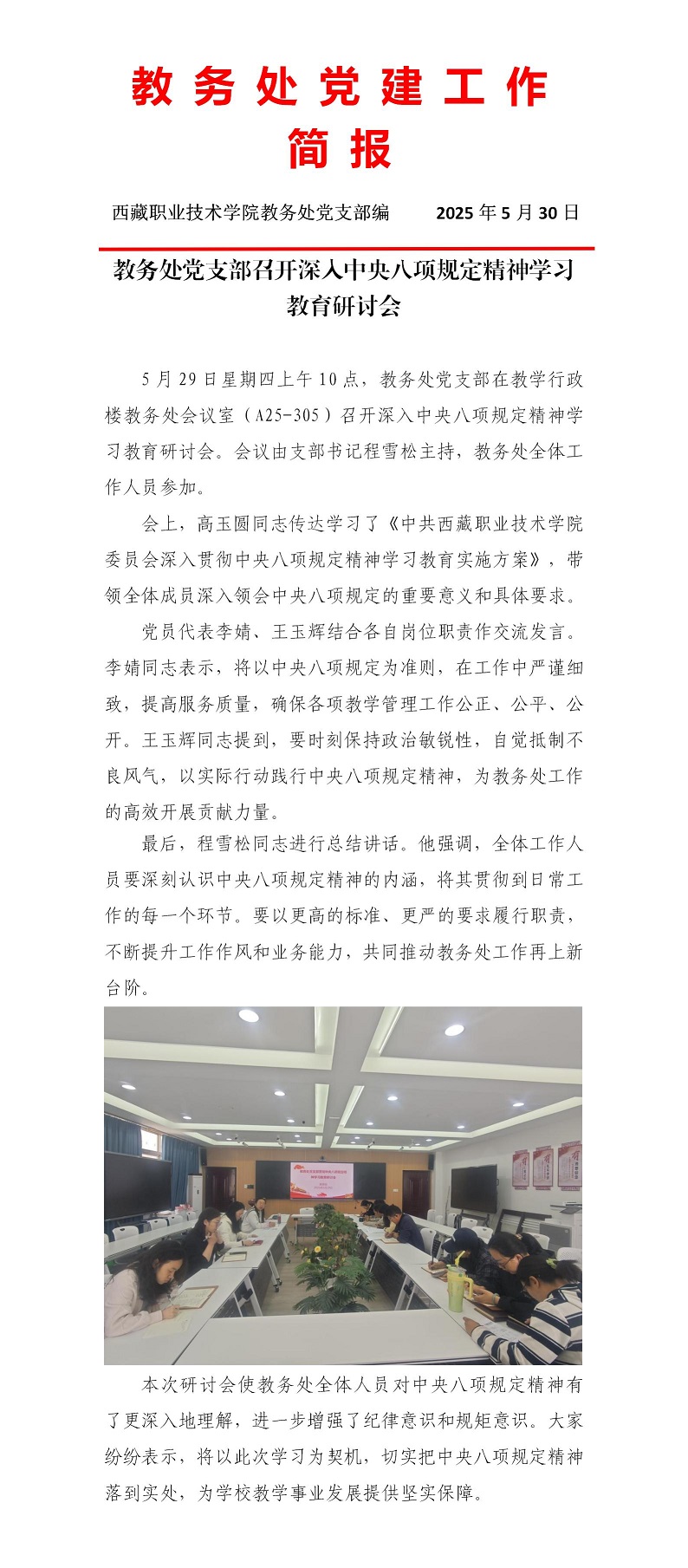 教务处党支部召开深入中央八项规定精神学习教育研讨会