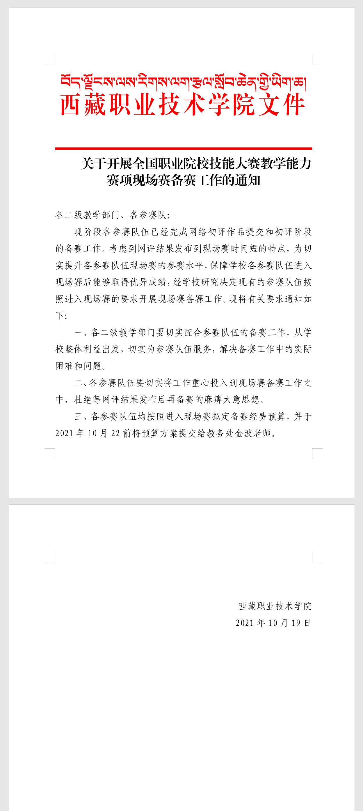 关于开展全国职业院校技能大赛教学能力赛项现场赛备赛工作的通知