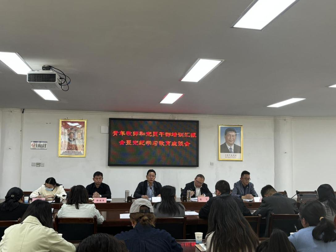 为贯彻落实习近平新时代中国特色社会主义思想,听取青年教师和党员干部赴区外培训情况。同时,以当前开展党纪学习教育为契机,进一步强化青年教职工党风党纪教育,提升党性修养和政治素养,持续推进党纪学习教育走深走实,学院于2024年5月22日下午组织召开青年教师和干部培训汇报暨党纪学习教育座谈会,会议由学院党委副书记、院长陈飞主持。