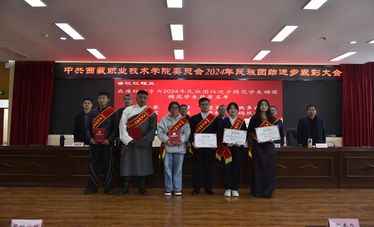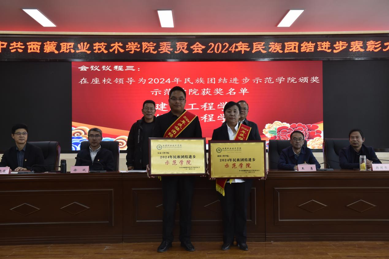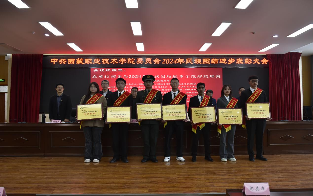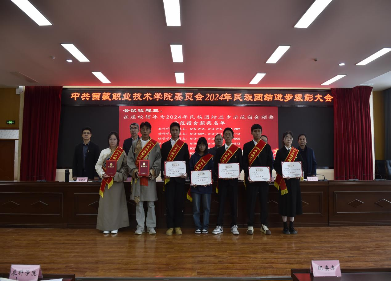 图为在座院领导为民族团结进步示范班级代表颁奖