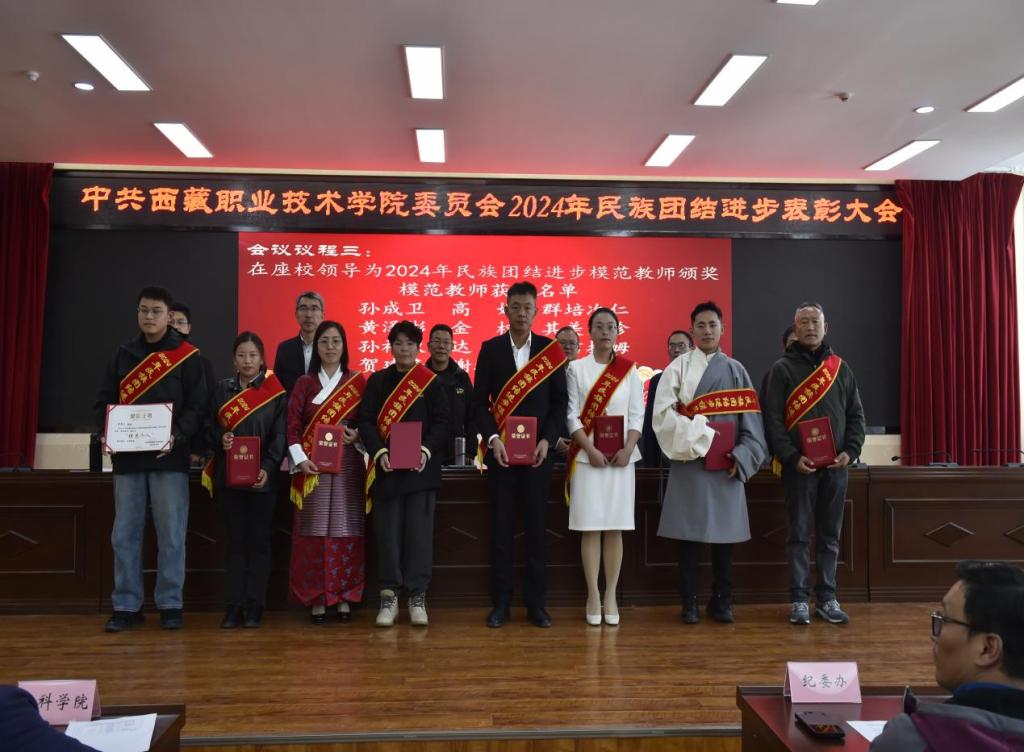 图为在座院领导为民族团结进步模范教师代表颁奖