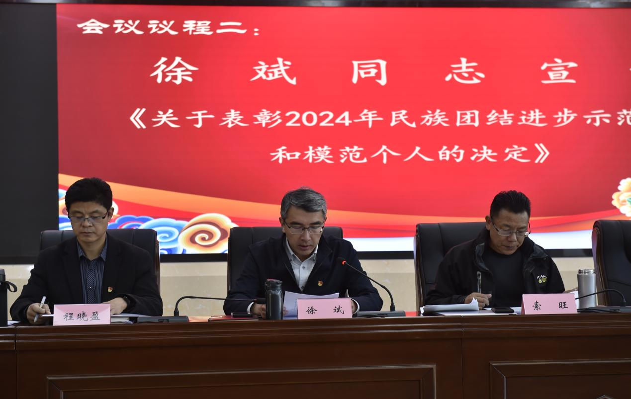 图为徐斌同志宣读民族团结进步获奖集体和个人名单